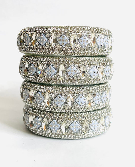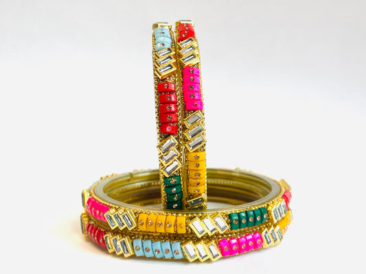Beautiful set of four multi-colored bangles with modern crystal design.