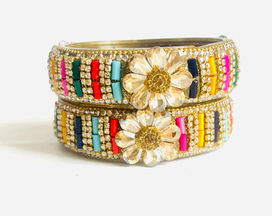 "Floral Fiesta" Vibrant Crystal Bangles Set