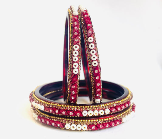 Designer Red Plastic Bangles - Pearl & Crystal Accents