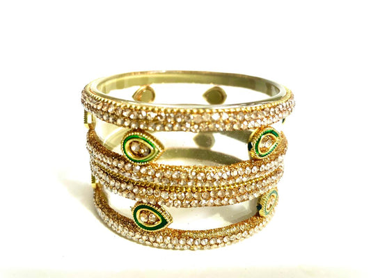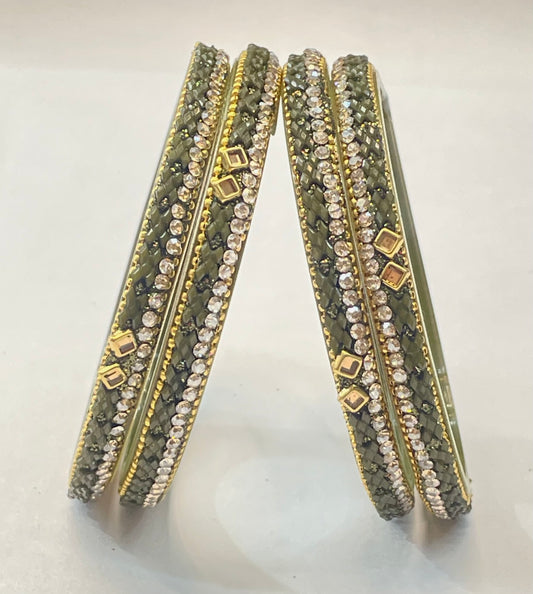 Elegant Glass Kangans - Mehndi Green with Diamond & Pearl Embellishments